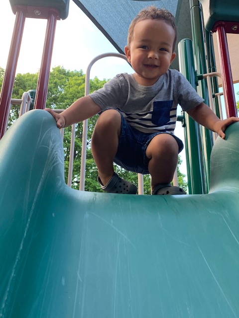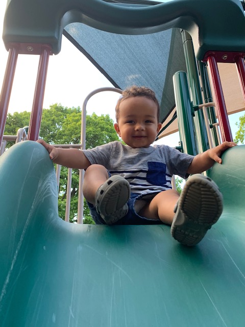 And he does love being outside, running with his friends, JT and Lilly, in the front yard or venturing to a near by park to play on the slides. Only when I take him there, he always wants to go UP the slide rather than down!