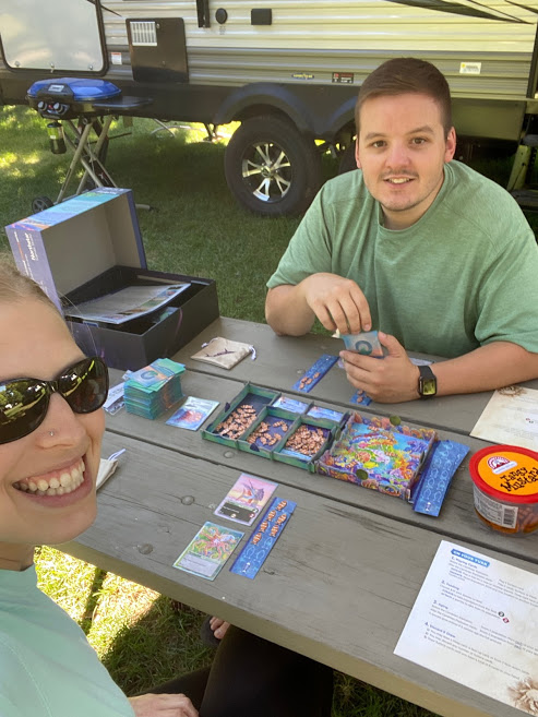 This is Jason and Jen when they used our trailer for camping a few weeks ago!! The above game is Oceans, which we never got a chance to play, but is typical of the type of games that Jason finds for us – luck and strategy type of games. They are very different from the games we played with them when they were kids!! Lots of fun and we also got in one game of hand/foot which the boys won.