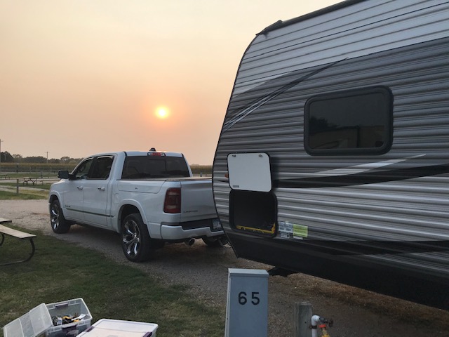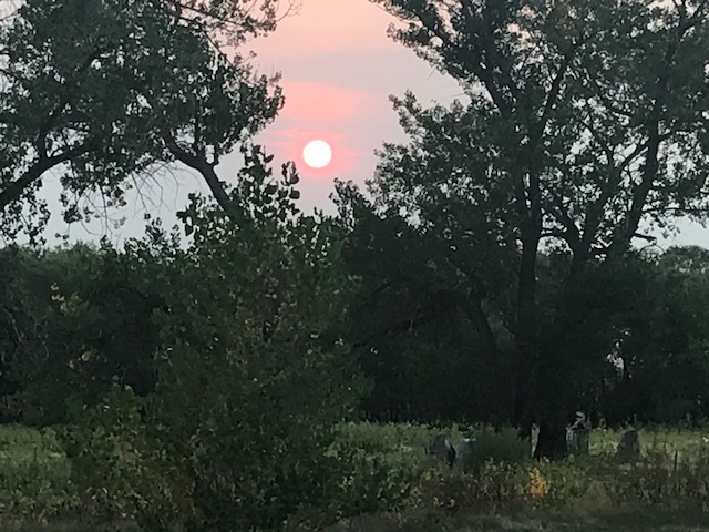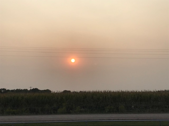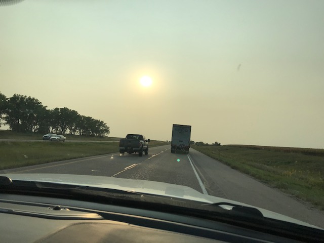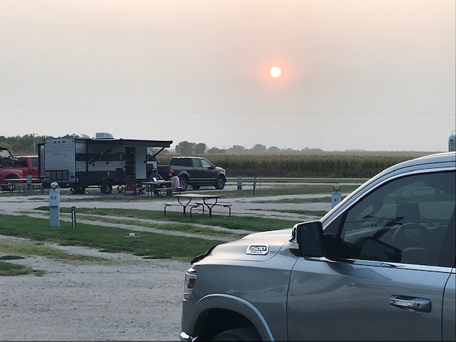 As you can see by this pictures, and what we saw a lot of while we traveled west, the haziness of the sky and the hazy sunsets!! This was mostly from the fires that were out west at this time. Even driving during the day was often hazy. So sad to hear about all the fires!!