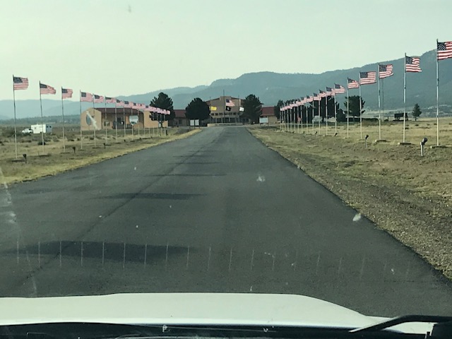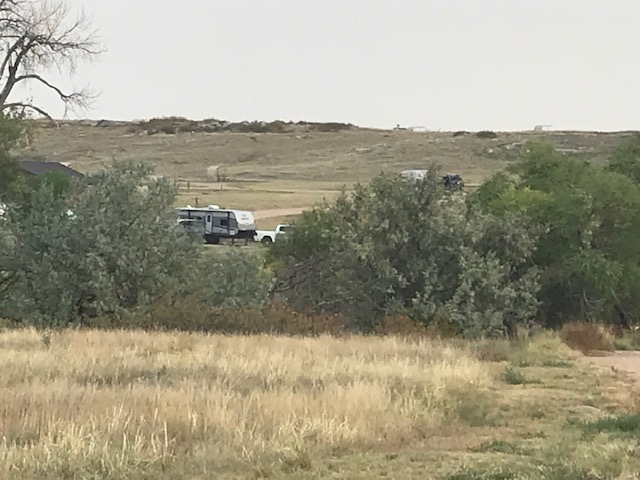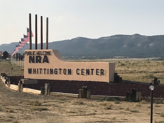 Then I saw a review, with high ratings, for the NRA Whittington Center not far off the freeway that we were on. I said to David, what do you think about staying at an NRA campgrounds where there are shooting ranges and live firing may be going on. He was fine with it so I called and she said come right on over there were plenty of sites available. We had a good pull through site that over looked one of the long firing ranges. It was quiet that night, but the next morning some competitions were underway. It was a strange place, for a campground, but was definitely interesting. When we checked in the lady told us to be aware because a bear had been spotted recently. Oh great!! What is it with me and bears! Well I figured with every camper around us probably armed, we would be protected if a bear wandered in! 🙂