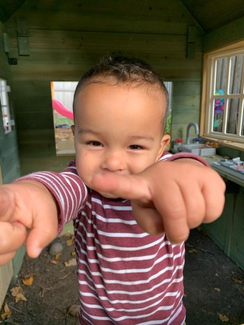 We have been enjoying some video calls with J3 the last couple of weeks. Jaxen loves to do “cheers” to anything — his cup, his fork, his spoon….so when we were out for a lunch Bumpa sent him a Cheers and he returned his!