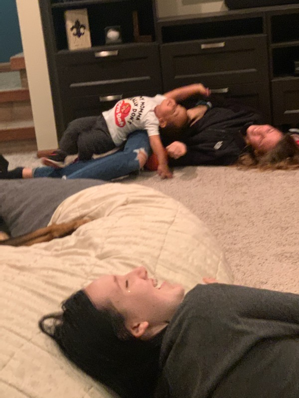 So much fun when you have a big sister that can drive you places!! Last week Erin and Emily decided to pay a visit with the Larkins and enjoy dinner with them. Jaxen was shy with them for the 1st 30 minutes or so…he had not seen them since April, and that was social distancing, but he soon opened up to both of them when he realized that they would be more than willing to rough and tumble with him!! 🙂