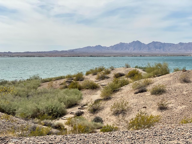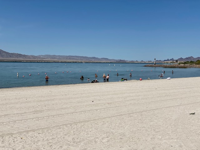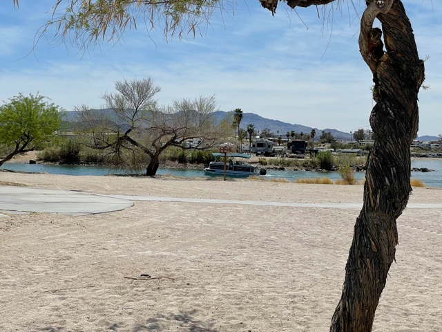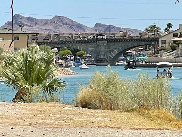 But we did enjoy some fun time yesterday in that we drove to Lake Havasu, which was a really nice drive. We kind of hung out in Lake Havasu State Park, which was right on the water and we could watch lots of book traffic going into the channel under the London Bridge and also enjoy a little beach time with toes in the sand and water. We will definitely make a trip back to this state park in the future.