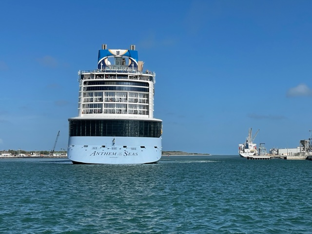It was nice that we had a clear blue sky, so the rocket did not disappear into the clouds. There were other things going on before the launch that was also entertaining. One of the big cruise ships came in to dock and it was fun to watch it pull in facing forward and then turn around to back in. That enormous boat looked like it just moved exactly where the captain wanted to and was awesome to watch its maneuvers.