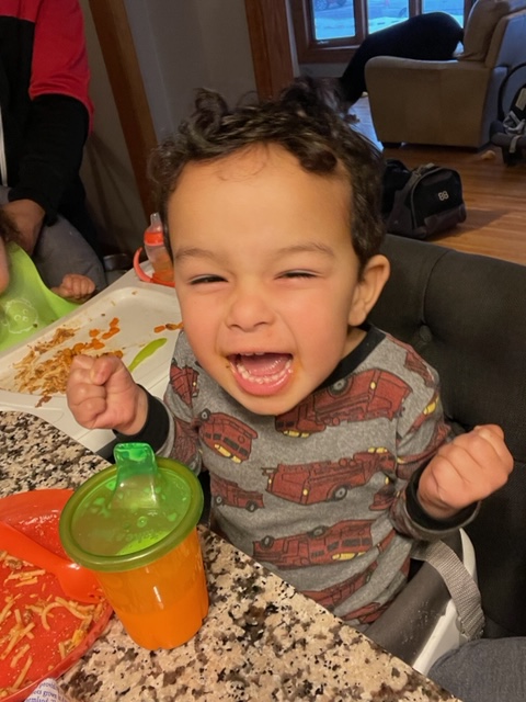 As you can see Jaxen is doing better after his pink eye fiasco!! He was very excited that it was “sghetti night”!!