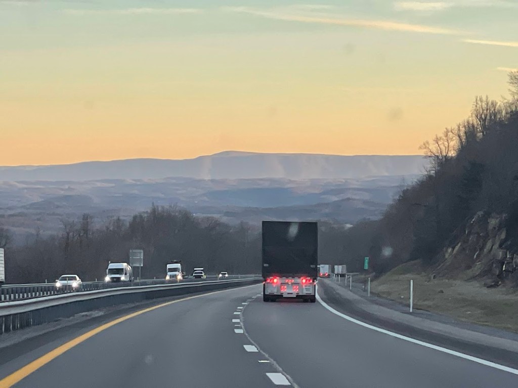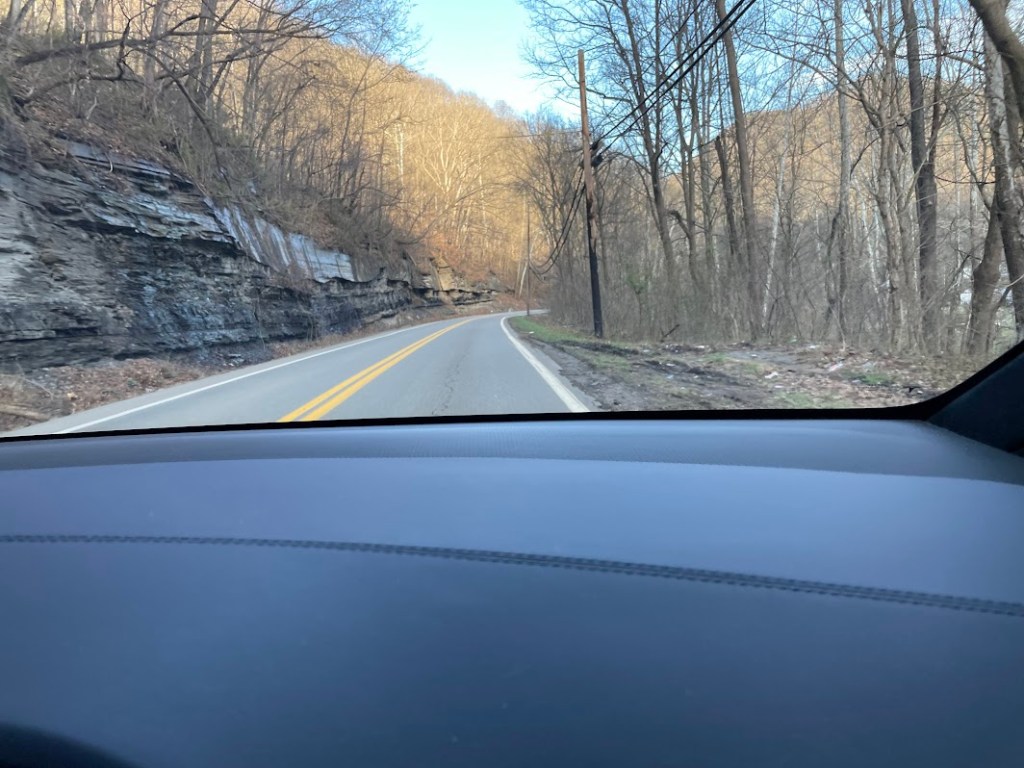 When we started this Plan B or C trip, I knew we would encounter tolls in the Chicago area and I thought also Indiana. So I did some research and saw both used the Toll By Plate which we have used in the past, which was quite handy. Easy to just drive through and then pay online! Well, then we came in to West Virginia!! Their tolls are not Toll By Plate, but you have to actually pay and only cash. We don’t often have cash with us on a daily basis, but always do on our trips. So thankfully we had cash otherwise our kids may have had to bail us out of West Virginia jail!! But David and I were talking about the tolls and having to pay cash and our GPS was leading the way. All of a sudden it took us off the freeway, just before the toll booth, and took us on an “alternate” route in a little back country of West Virginia and then after a few miles took us back on the freeway. I said it was like the car heard us, because as you can see by the map, the “alternate” route was parallel to the freeway! The slight sound of the music from Deliverance was playing in our minds on this “alternate” route!