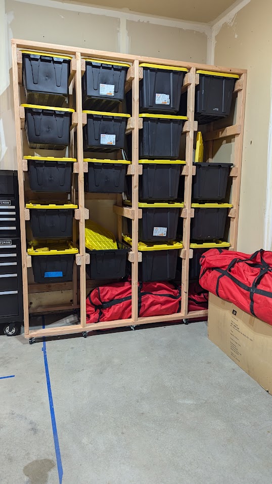 Some pictures from Jackie’s on Christmas Day. Also our tree decorated except for the very top, which we needed a tall person to help us complete. The tub storage you see in our garage is mainly to organize my Christmas stuff, which I did as I undecorated and label each container so I know exactly what is in each! 🙂